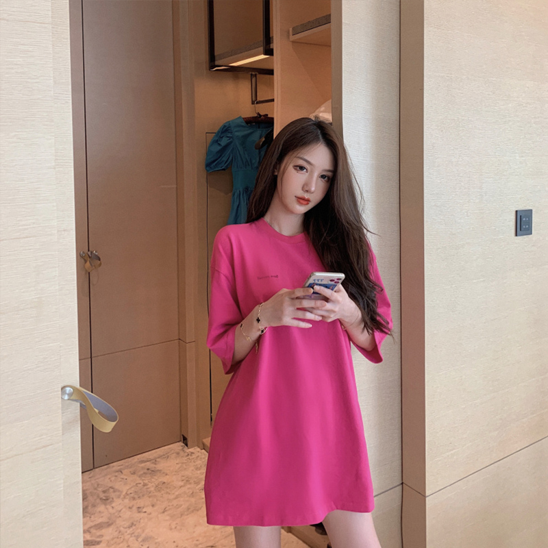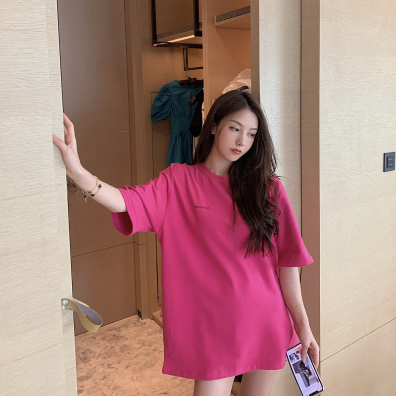 Spring 2021 new female net red T-shirt female ins super fire in the long version of the short-sleeved casual Korean version loose thin top