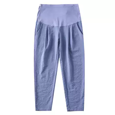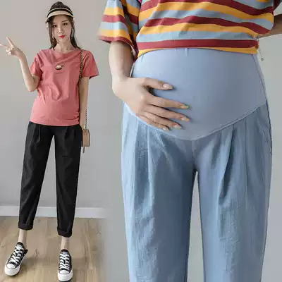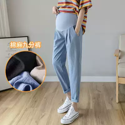 Pregnant women's pants summer cropped belly pants outer wear spring and summer thin loose cotton and linen casual blue inner pants large size