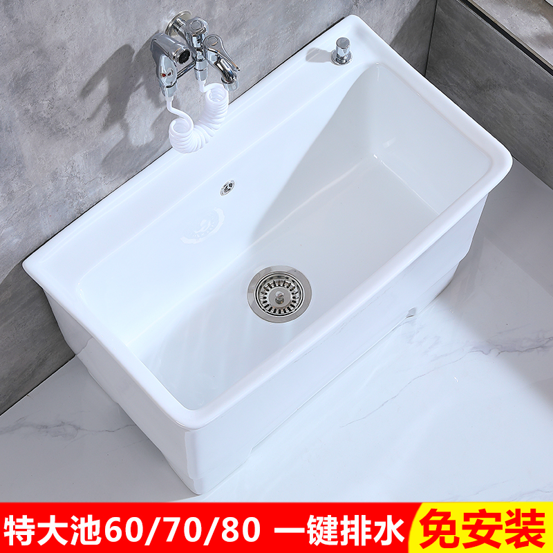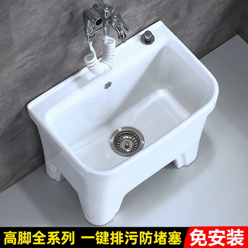 Ceramic washing mop pool with high feet and legs Home outdoor balcony powder room floor mop cloth trough basin automatic water