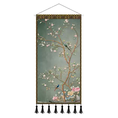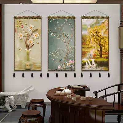 New Chinese style wind and water to make money large living room porch decoration hanging painting study tapestry Chinese background wall hanging cloth