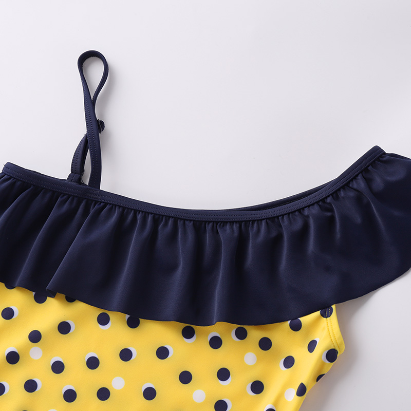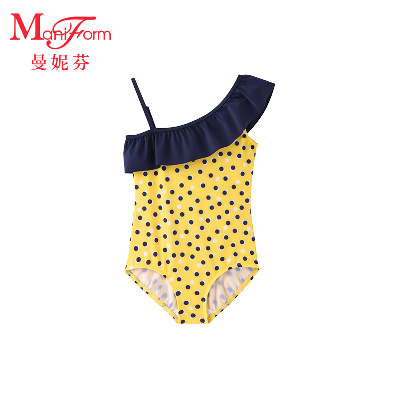 Manifan cute polka dot girls one-piece swimsuit playing with water jacket ruffled children's swimsuit 21030506