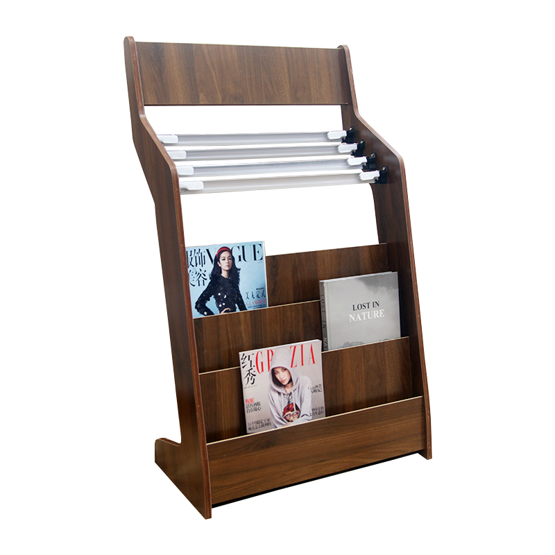 Modern Nordic simple small wooden newspaper racks Newspaper racks Magazine racks Floor office newspaper racks walnut color