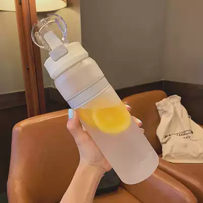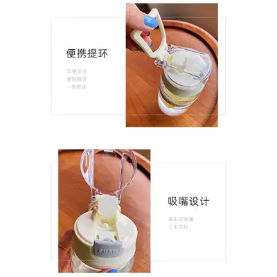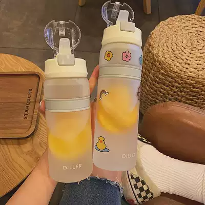 Sports portable transparent water cup female student with cup simple high temperature plastic cup adult pregnant woman suction tube Cup