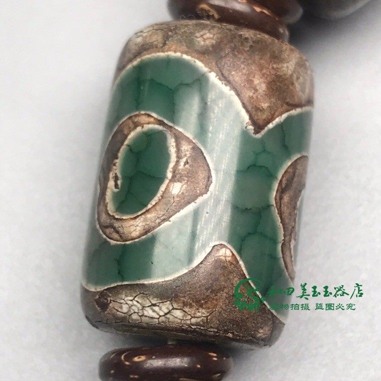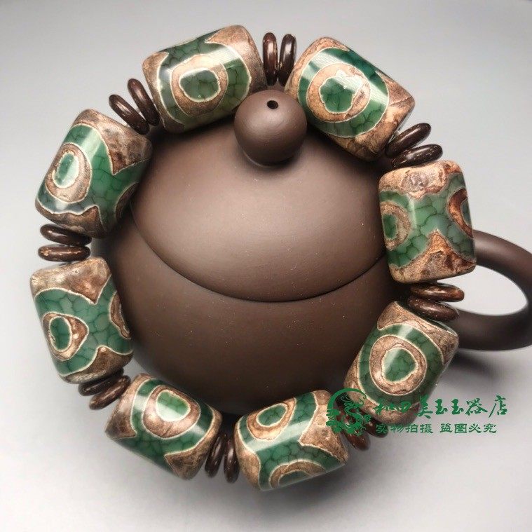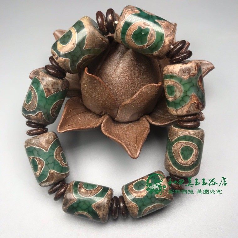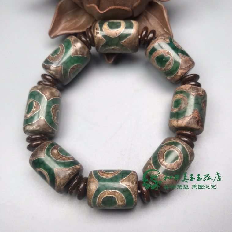 Natural Tibetan-style old dzi bead hand chisel original stone sky eye wrapped silk green agate genuine men's and women's dragon pattern three-eye bracelet