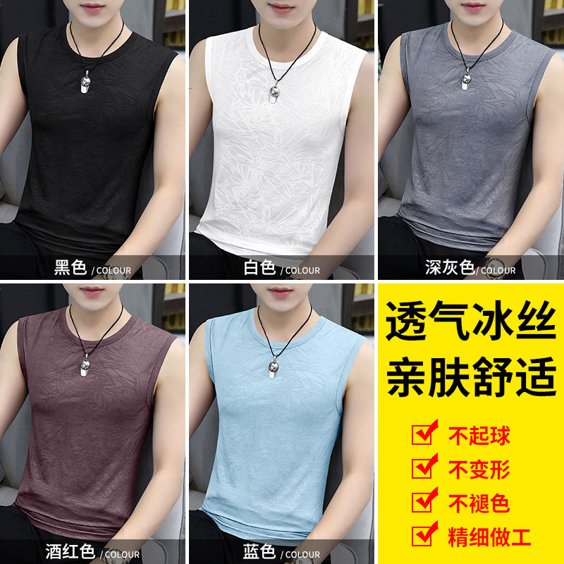 2 Pieces) Ice Silk Vest Men's Summer Breathable 2022 New Trend Fitness Sport Sleeveless Ice Sensation T-Shirt Tide Card