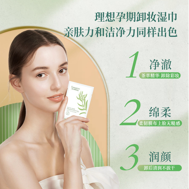 Kangaroo Mom Pregnant Tea Tree Cleansing Fresh Makeup Remover Wipes Gentle Skin-Friendly Deep Cleansing 30 Tablets Box
