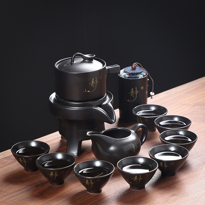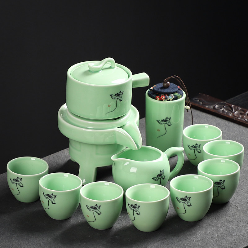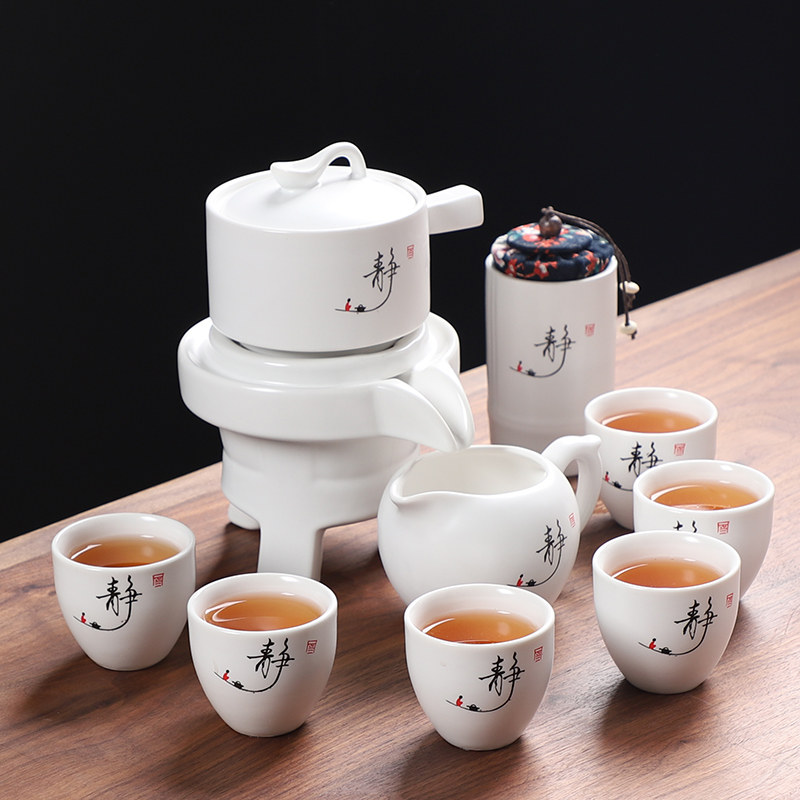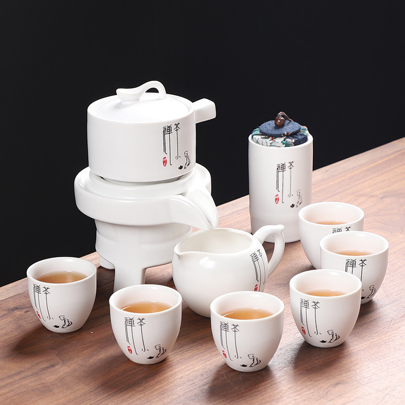 Slowly semi-automatic tea gear household simple stone mill ceramic kung cup teapot set modern tea cooker