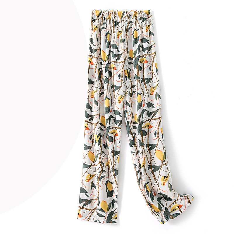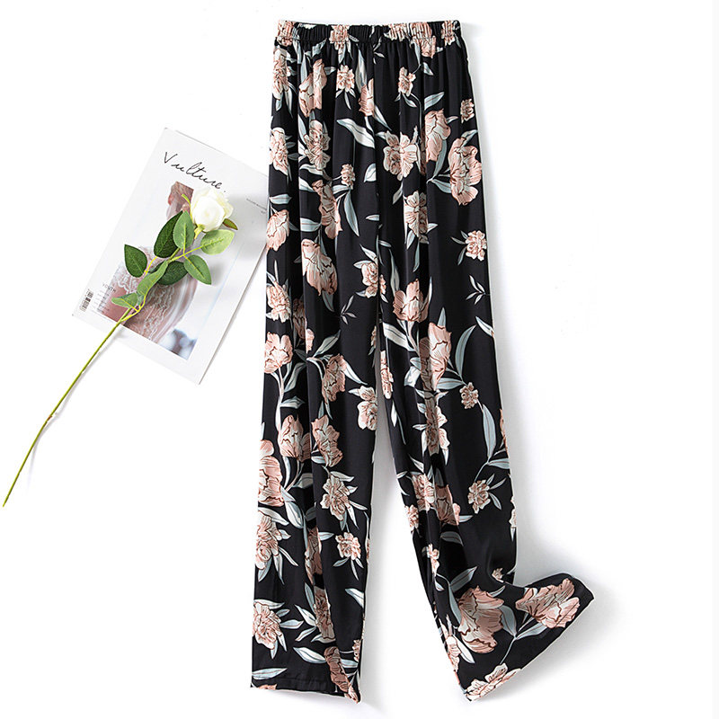 Spring Summer Sleeping Pants Women's Thin Ice Silk Long Pants Loose Casual Anti-mosquito Pants Print Extractable Air Conditioning Home Pants