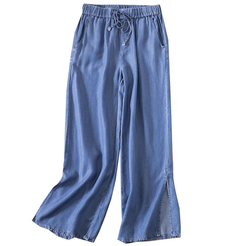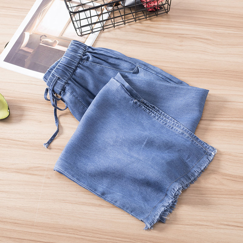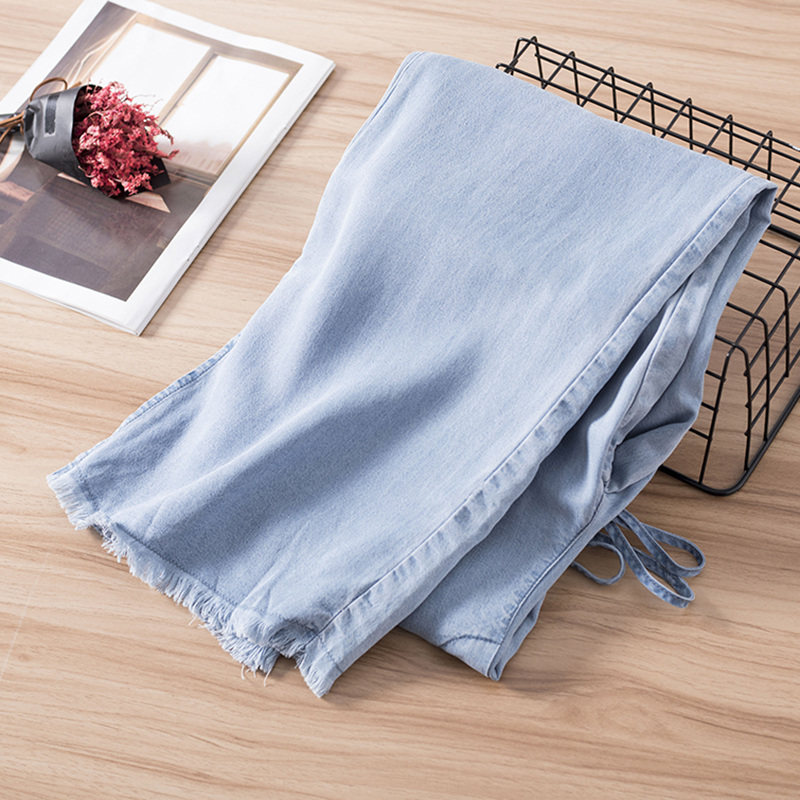 Sky Silk Jeans Woman Summer Thin long pants Han Fan loose Thin Foot with high waist and elastic broadlegged pants