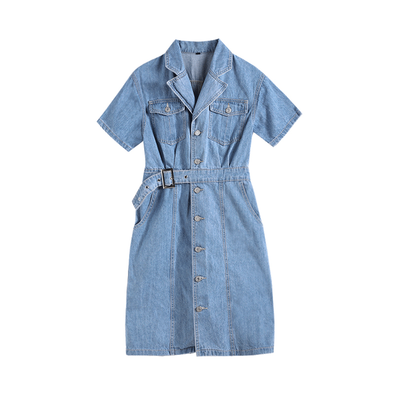 And lane summer port taste retro waist denim dress female bellflower French Hepburn style suit collar shirt skirt