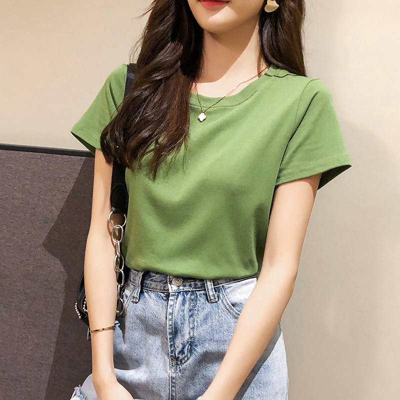 Hong Kong Tide Butter Fruit Green Shirt Short Sleeves 2023 Han - Edition Summer decoration pure cotton Matcha Green Cotton Cotton Cotton Hundred Cotton Tops
