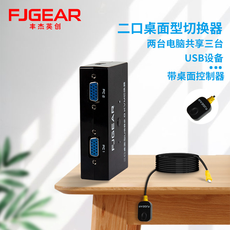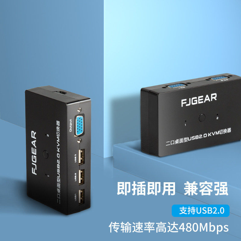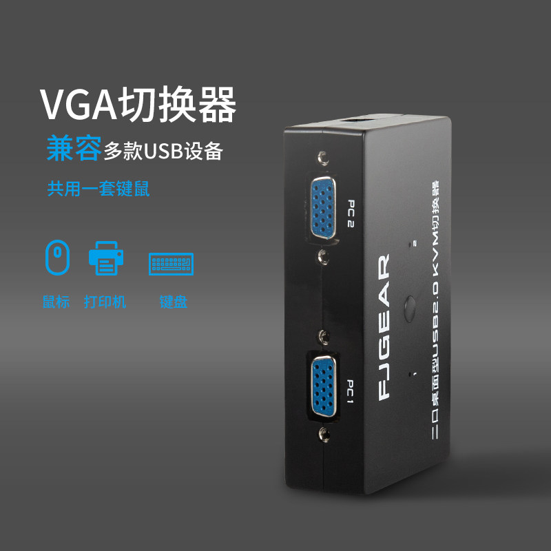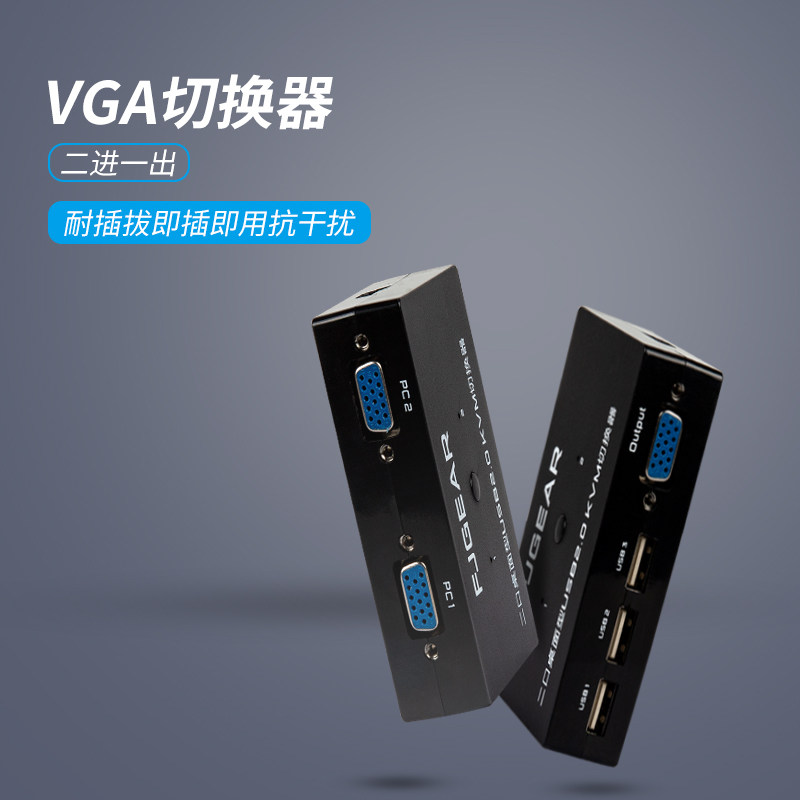Two computers share the keyboard, mouse, monitor, USB shared VGA computer host, two in and one out, 2 ports KVM switcher with desktop controller, dual computer keyboard and mouse switch