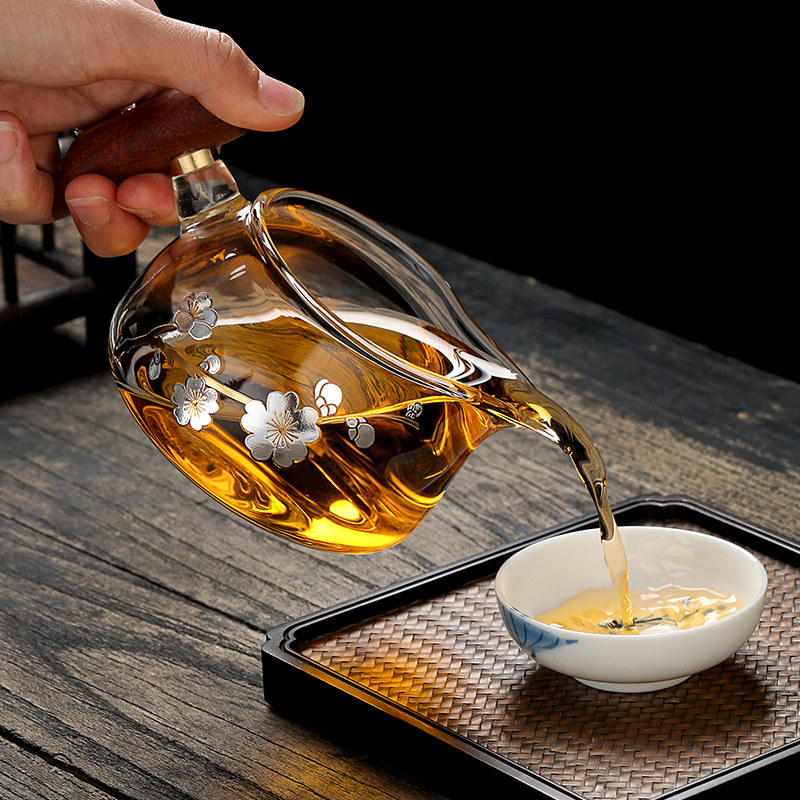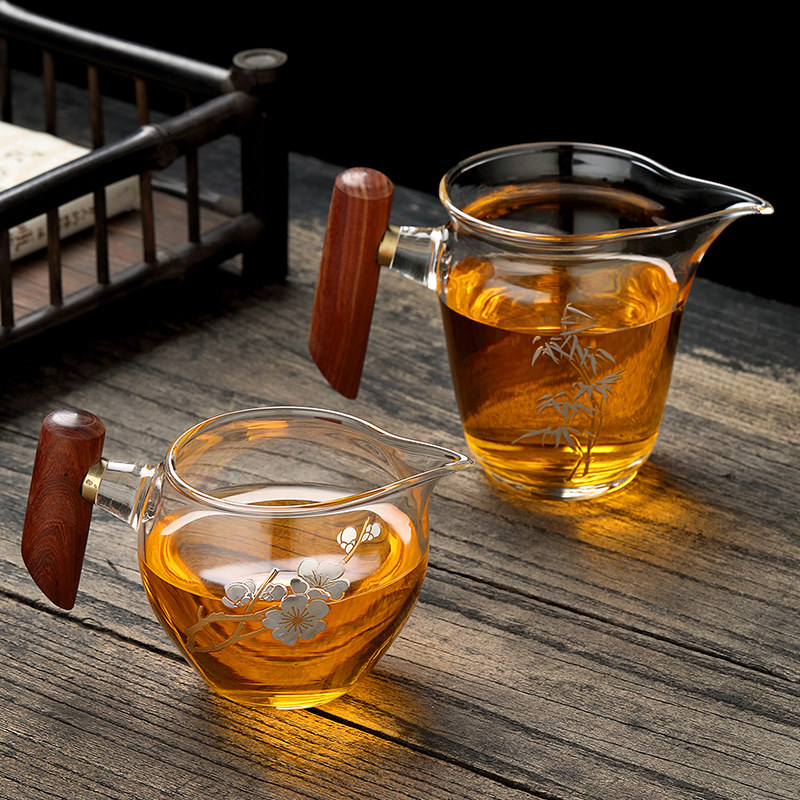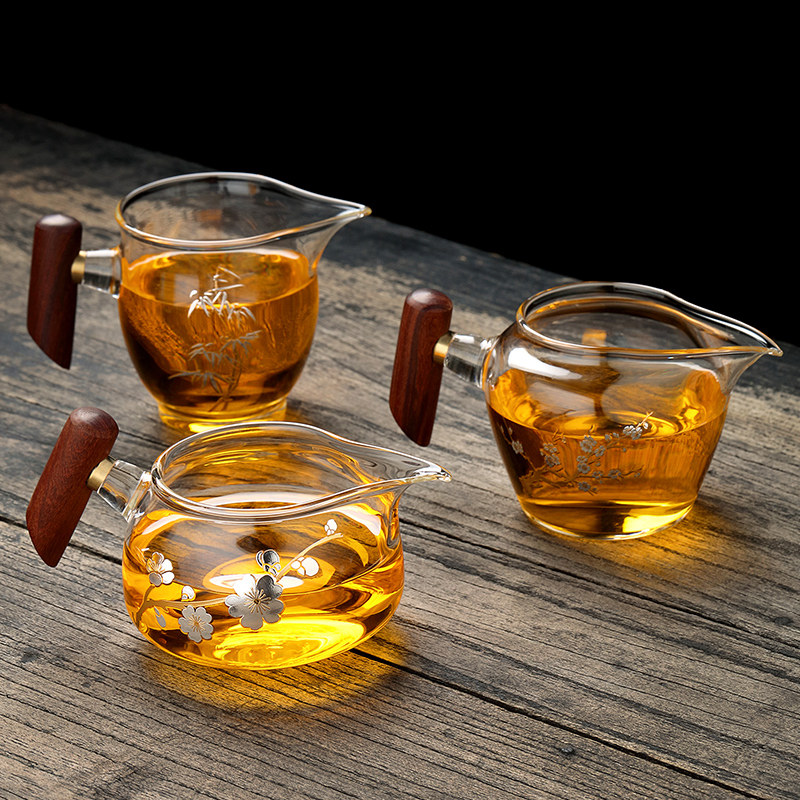 Solid wood side to make fair cup glass thickened heat-resistant sub-tea instrumental Gongfu tea accessories gold and silver burning public cup pour tea
