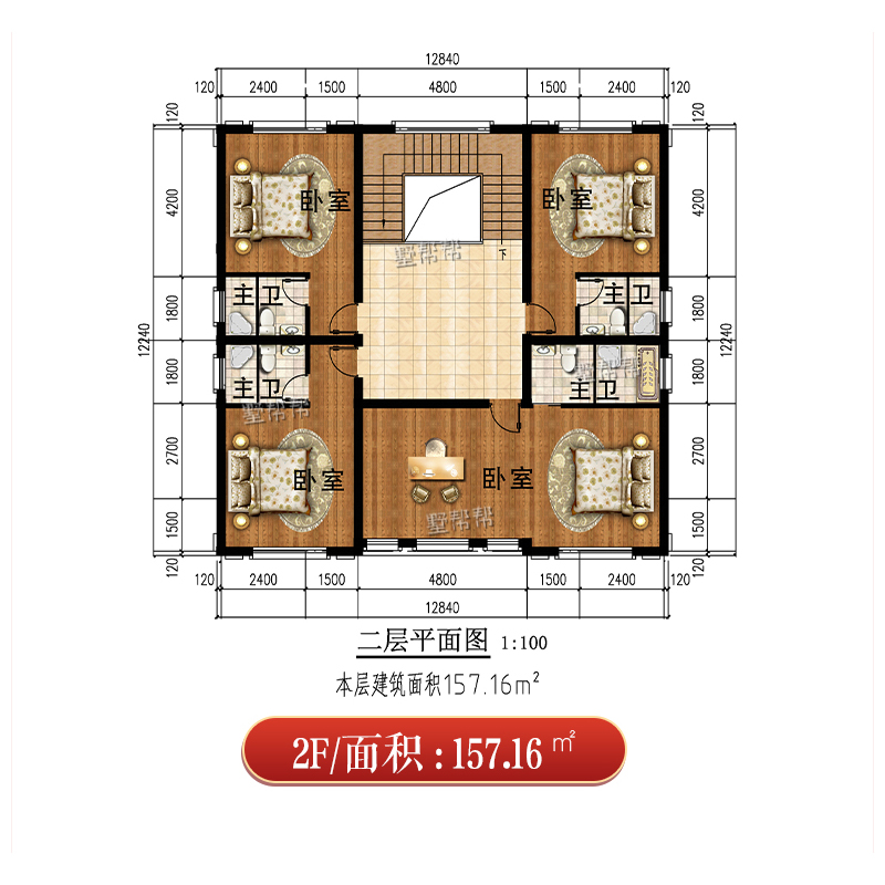 Rural self-built house two-story new Chinese villa design drawings Rural house building a full set of construction renderings