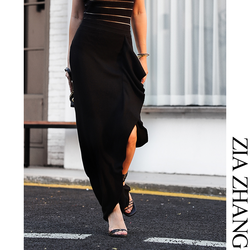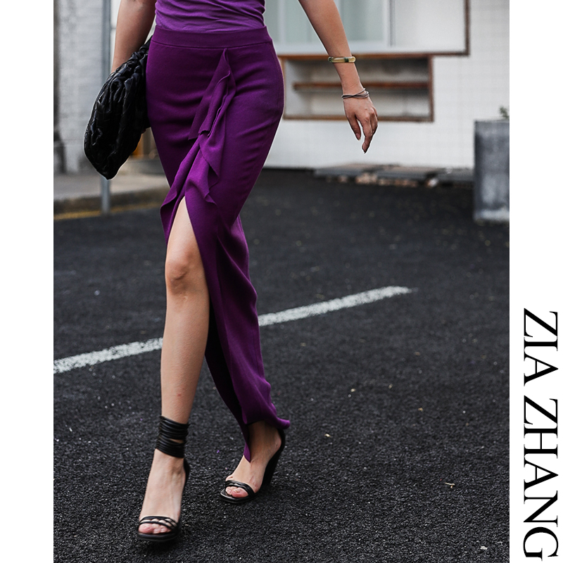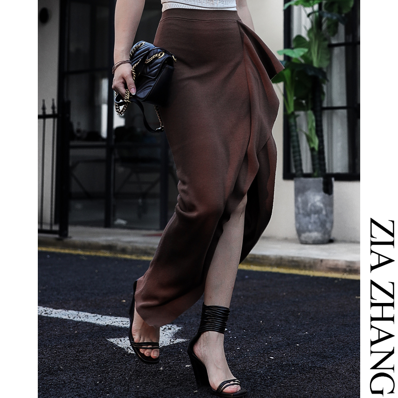 Z Boss Mulberry Silk Blend Material Lotus Leaf Side Repair Body Elastic Irregular half body dress One-piece long version dress