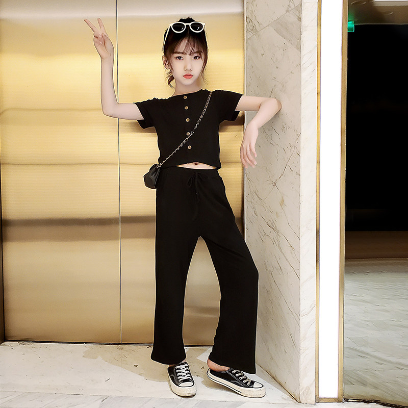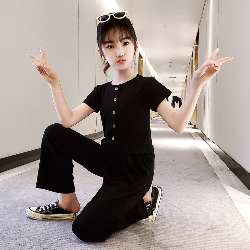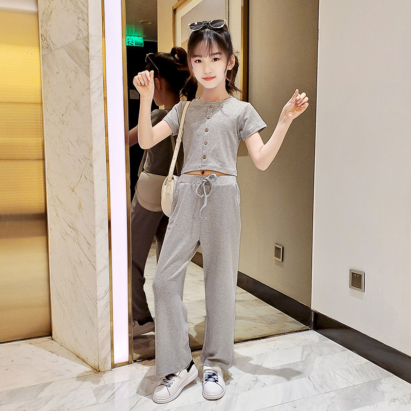 Girls' short-sleeved wide-leg pants suit 2022 summer new style 12-13-15 years old middle-aged girls' clothing net red ocean style