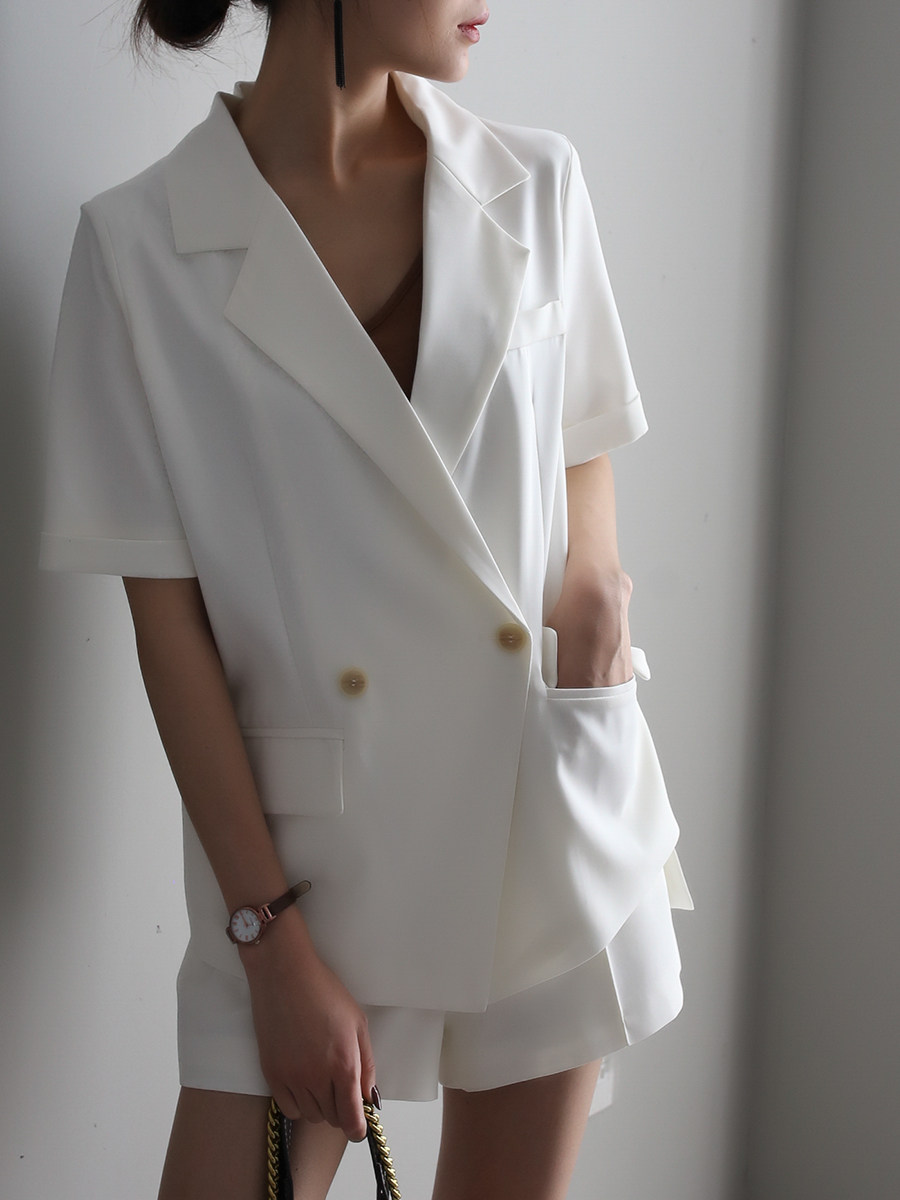 Warmo 2022 summer new casual commuting temperament short-sleeved suit suit slim shorts two-piece female tide
