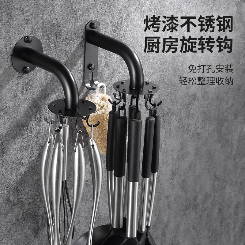 Non-punching kitchen hook containing layer frame multifunctional wall-mounted rotary hook boiler shovel spoon shelving rack