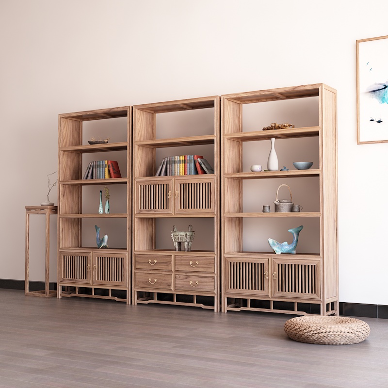 New Chinese Bogu Frame Old Elm Wood Bookshelf Combined Zen tea cabinet 2021 new display case solid wood partition-Taobao