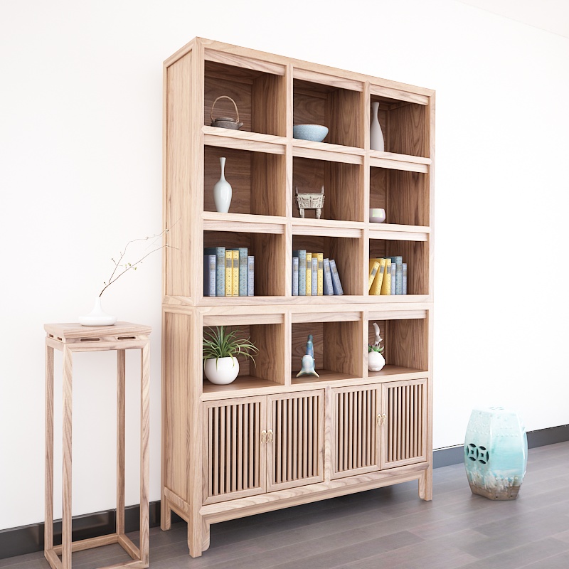 New Chinese Meditation Bookcase Log Book Cabinet Bogu Frame Old Elm Wood Show Rack Tea Rack Solid Wood Tea Room Furniture-Taobao