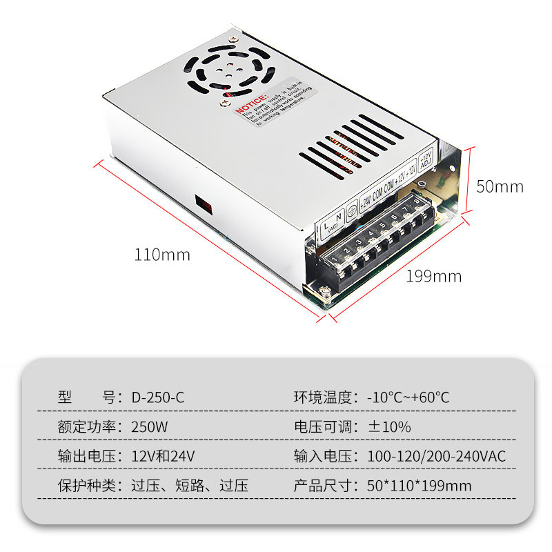 Meanwell switching power supply dual output D-250A B C 5V20A 12V10A24V5A Two output voltages
