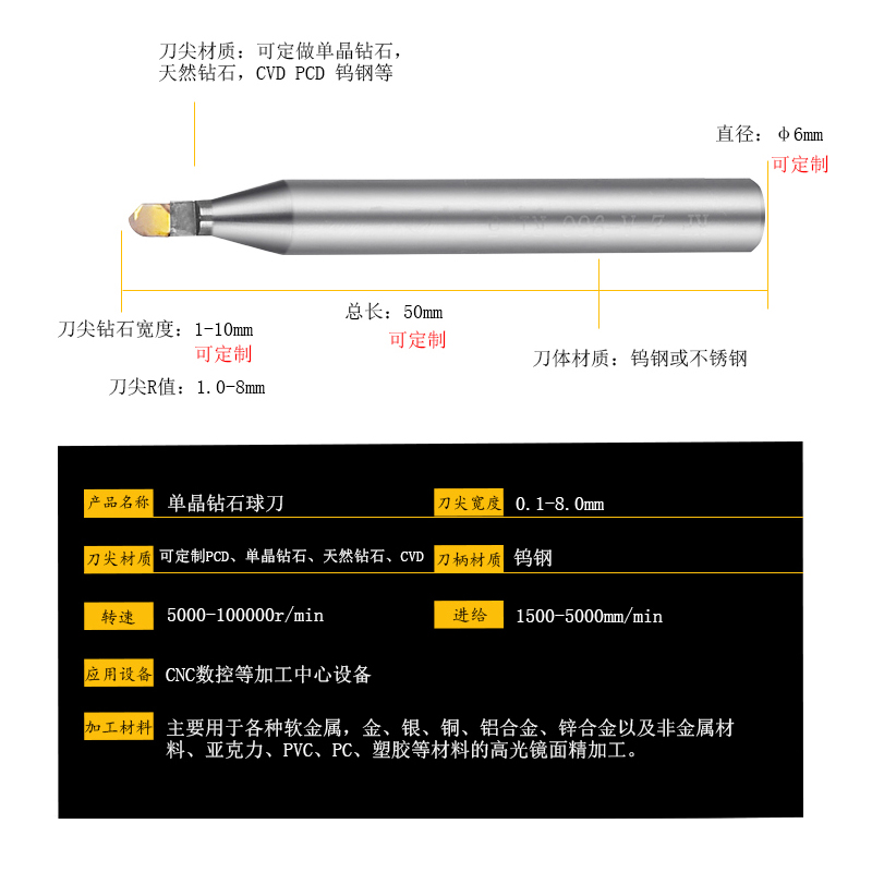 Single crystal diamond ball knife under single Please note specifications or contact customer service