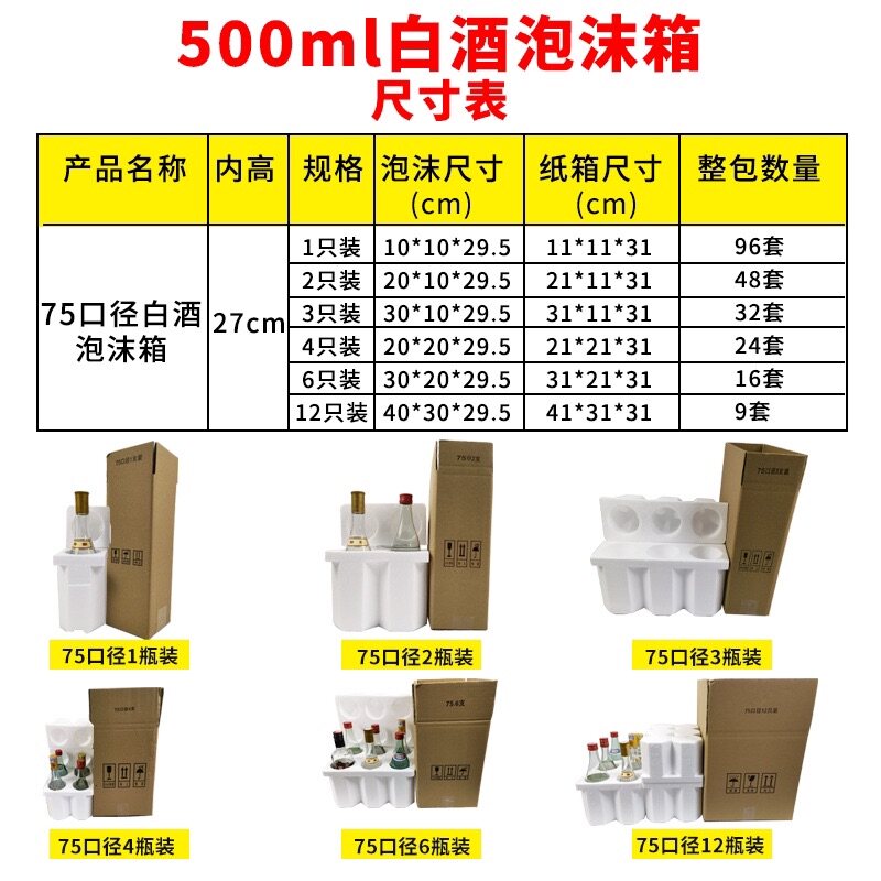 Liquor Fenjiu Niulanshan 6-pack foam box carton 75 caliber shockproof express six bottles box grape