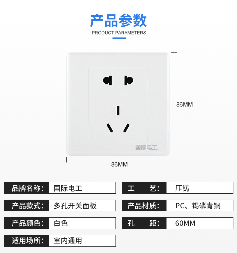 International electrician 86 Ya white socket Concealed socket Panel switch socket USB wall power switch socket