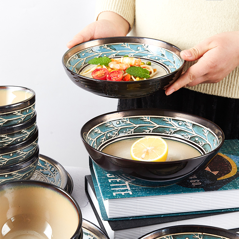 Jade Springs Norway Forest Au Style Relief Bowl Tray Ceramic Cutlery American Bowl DISH COMPOSITION SUIT HOME CREATIVE LIGHT LAVISH