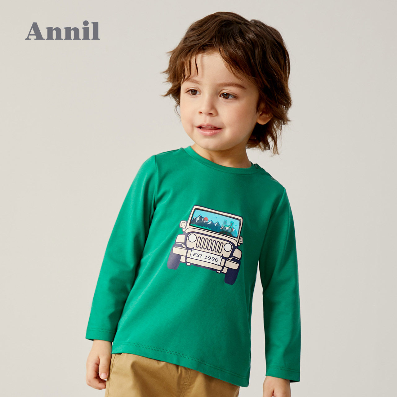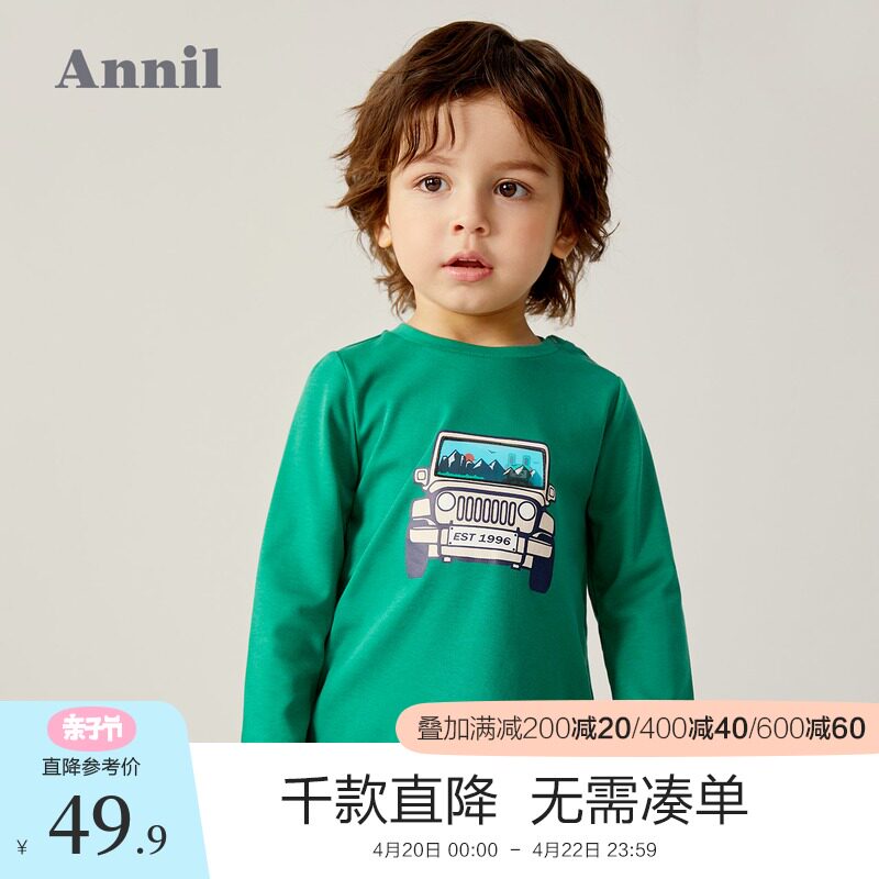 Annil children's boys T-shirt long-sleeved new foreign pie baby print top cotton jacket
