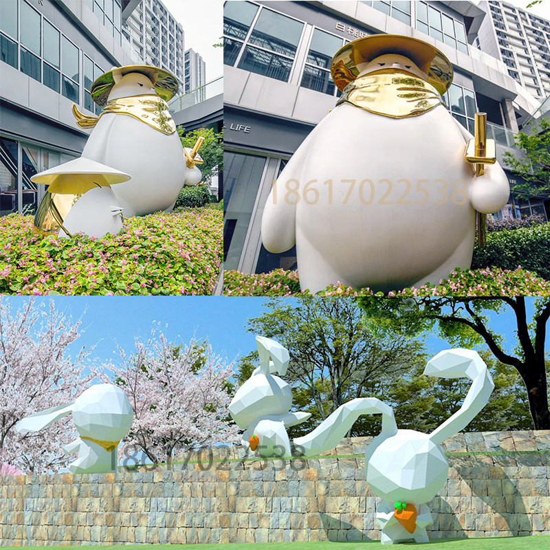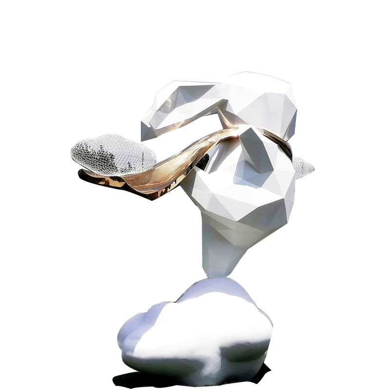 Stainless steel hollow cloud sculpture Glass fiber section Rabbit braided cloud White knight Sample house Display center Garden decoration