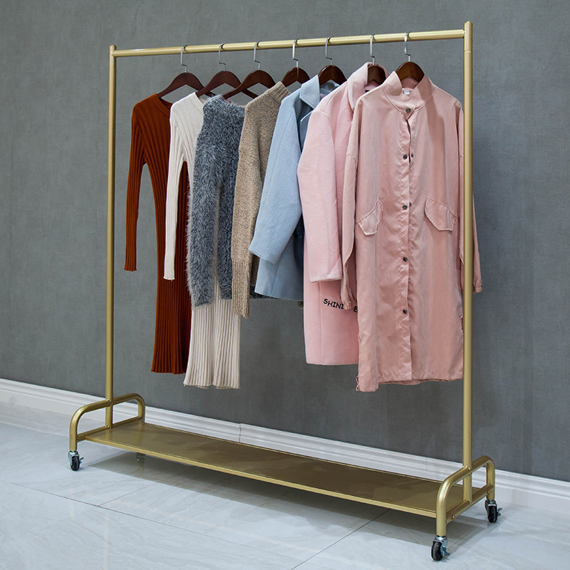 Clothing store display shelf water pipe gantry hanging hanger floor-to-ceiling women's clothing store net red decoration mobile hanging rail with wheels
