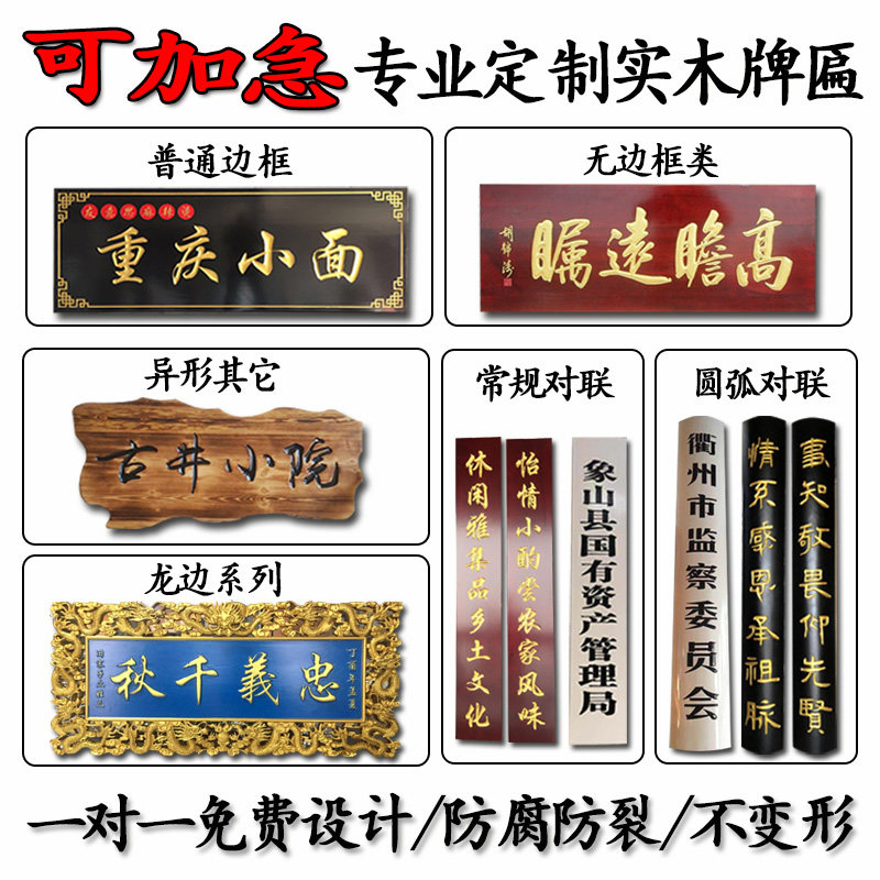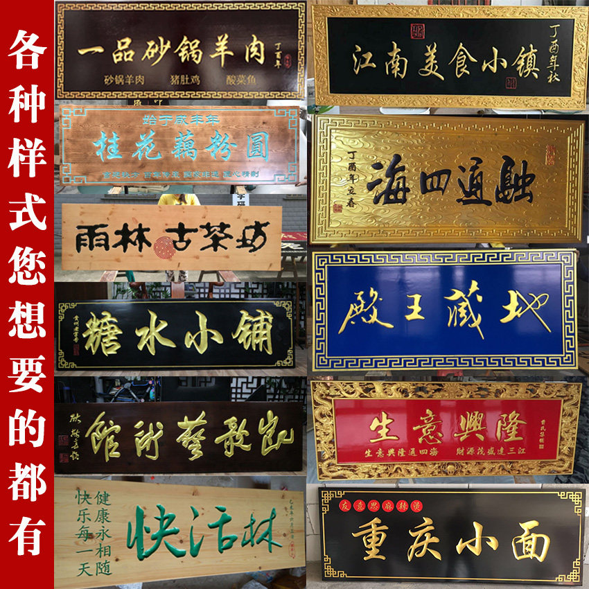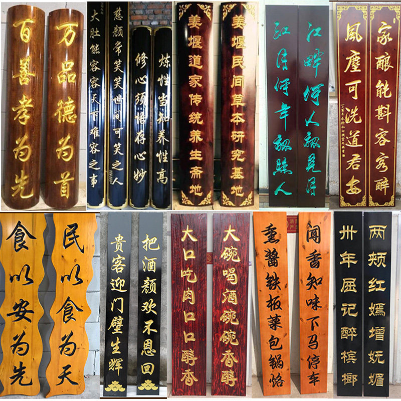 Solid wood plaque custom-made antique opening door shop personality signs circular couplet calligraphy lettering Dongyang wood carving