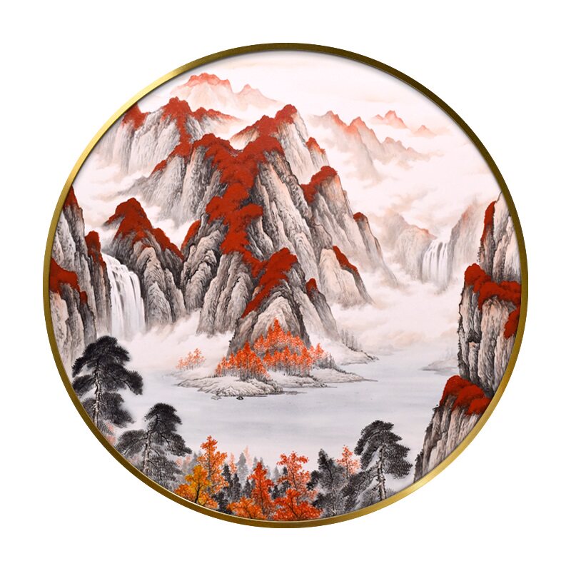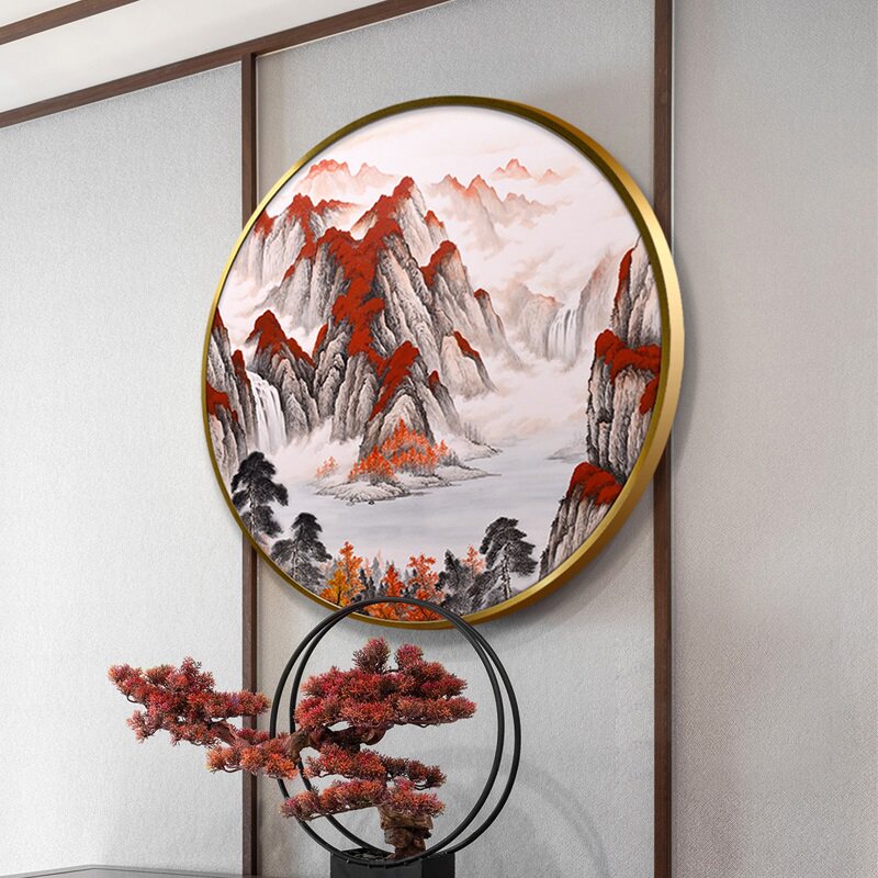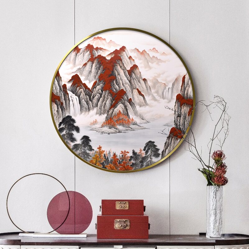 Pure hand-painted new Chinese landscape landscape oil painting living room decorative painting cornucopia round porch hanging painting dining room mural