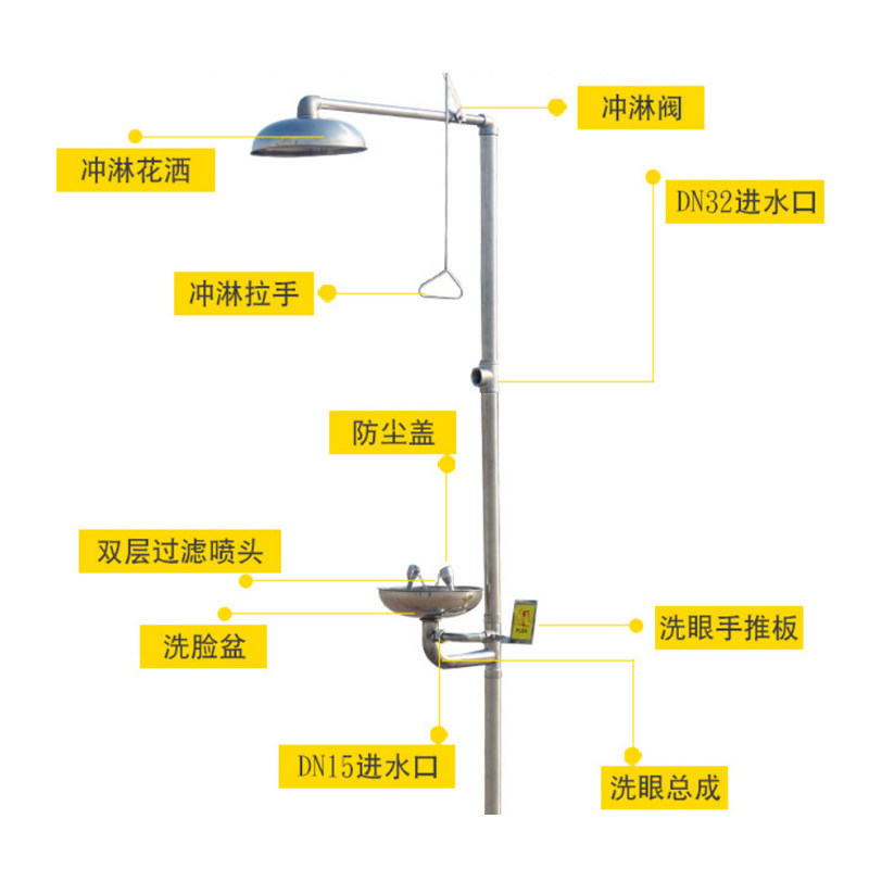 304 stainless steel composite emergency spray refrigeration plant flush shower flush lab eyewashing equipment industry