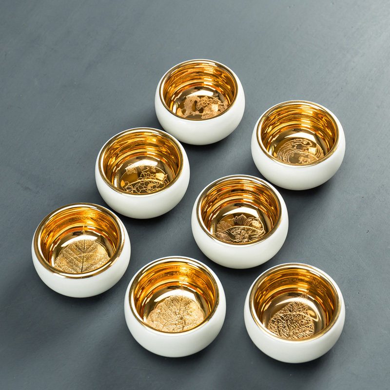 Gold inlaid jade tea cup-Xianglong gold inlaid with jade tea cup-Feng Dance Gold Inlaid Jade Tea Cup-Lotus Gold Inlaid Jade Tea Cup-Lotus Leaf Gold Inlaid Jade Tea Cup-Wood Leaf Gold Inlaid Jade Tea Cup-Bodhi China Red