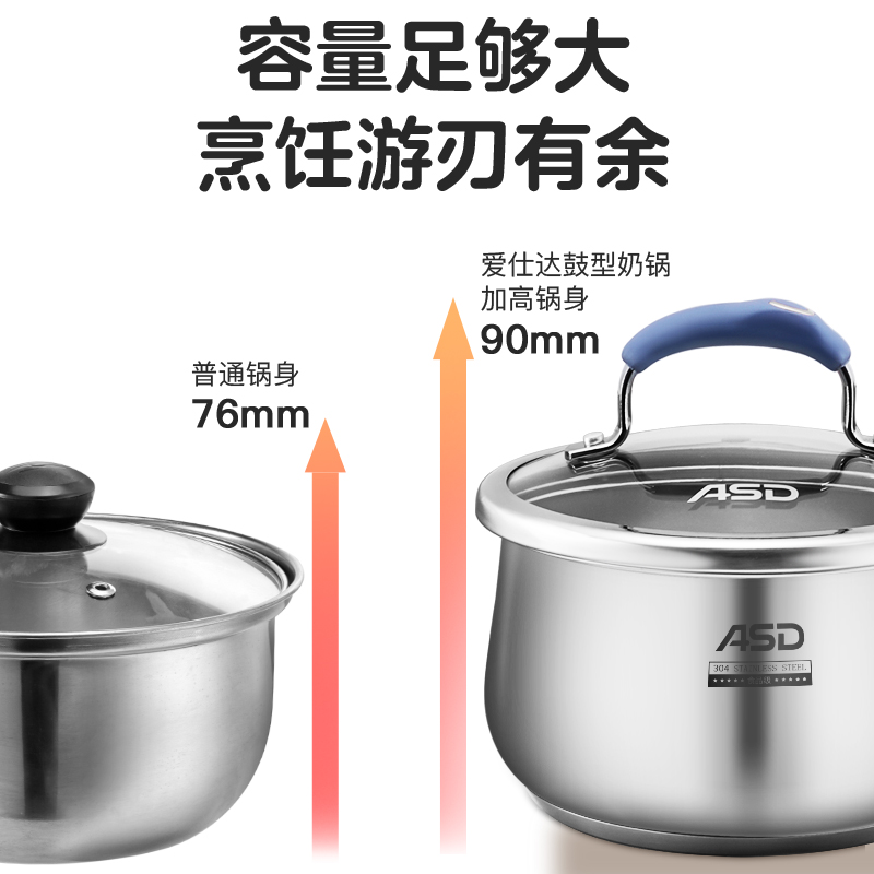 Love Shida Milk Pan 304 Stainless Steel Thickened no-coated soup pan Small milk pan Baby baby Deputy food pan GL1916B