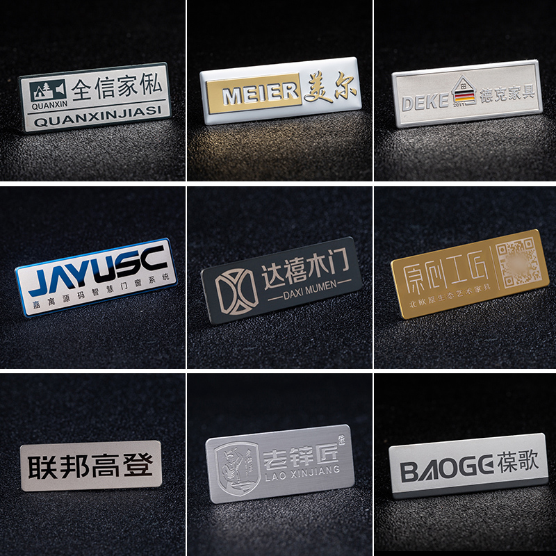 Sign custom metal small aluminum alloy high-gloss stamping concave and convex electroplated antique copper zinc alloy trademark furniture wood door electrical cabinet industry bathroom speaker OEM logo custom nameplate production