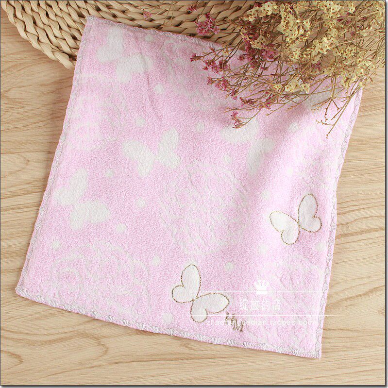 Recommended Japanese pure cotton jacquard embroidery Sen Yinghui boutique lady style pink handkerchief small square towel soft and absorbent