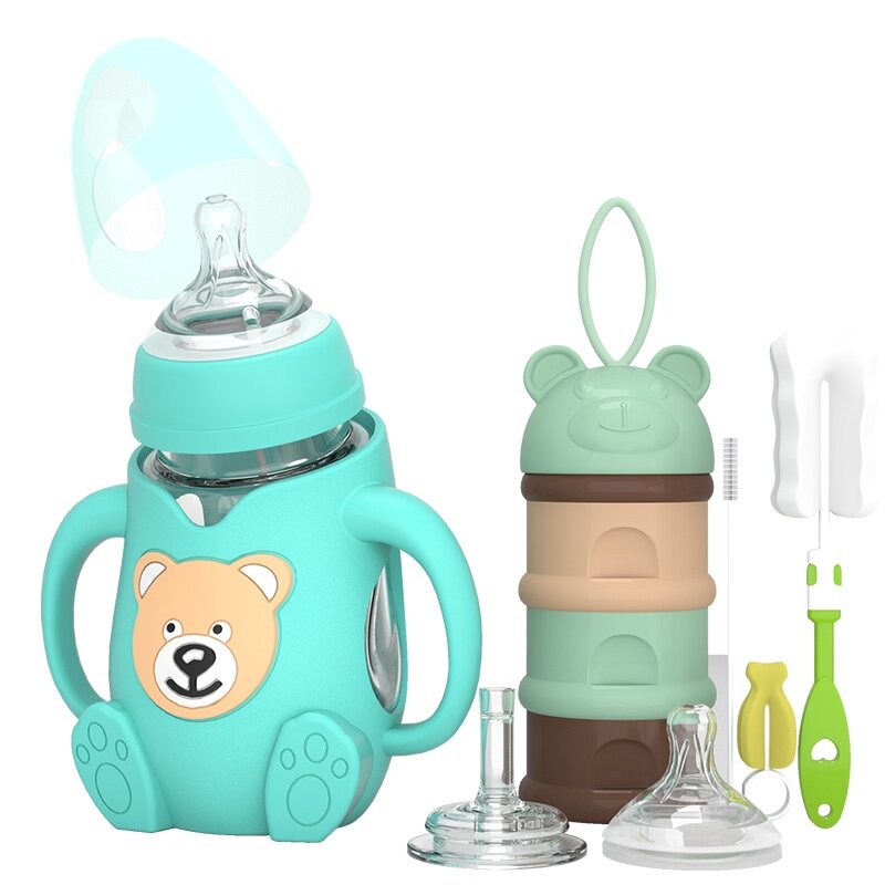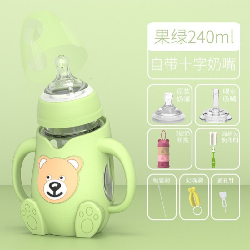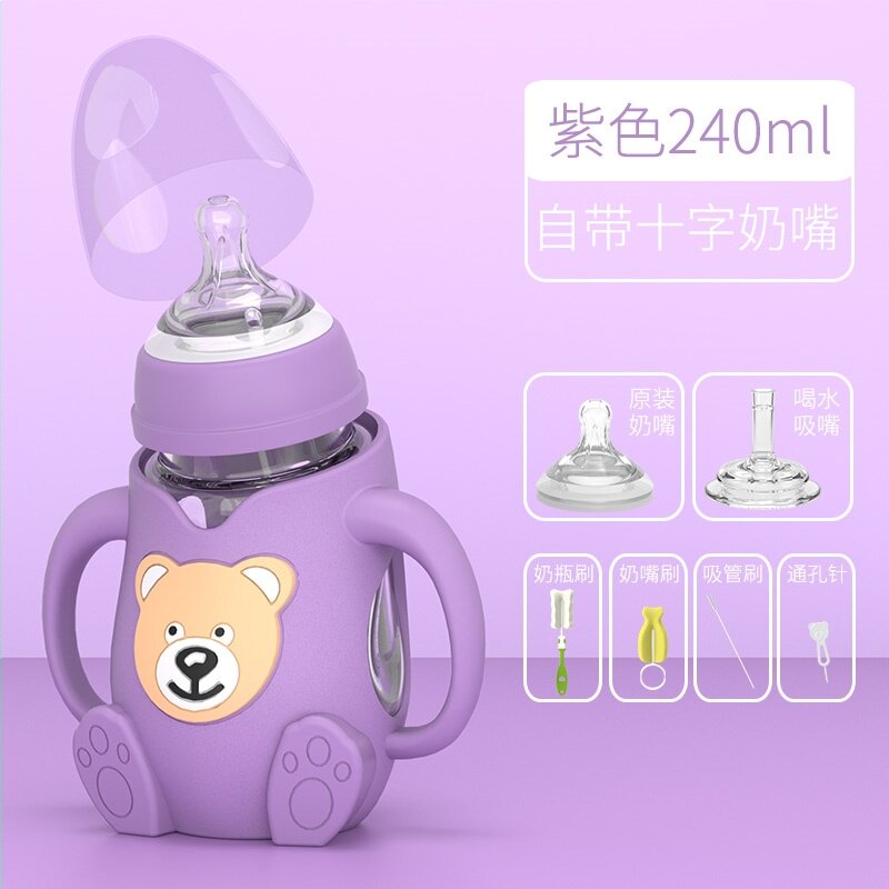 Large capacity 400ml straw baby tempered glass bottle 300ml large number nostalgic old fashioned anti-fall baby