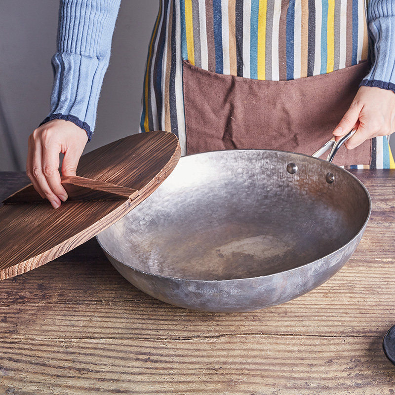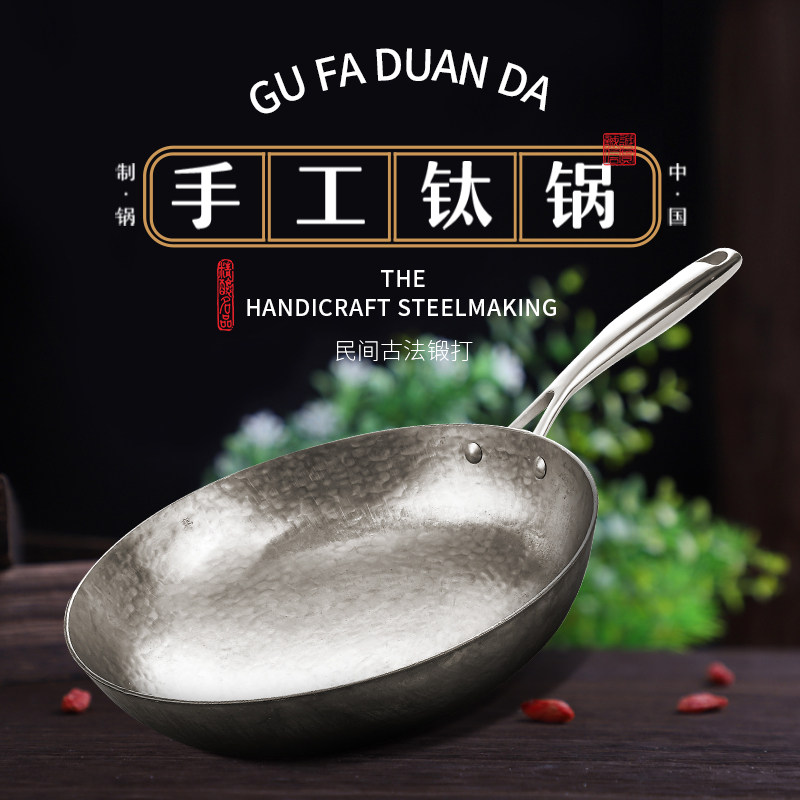 Pure titanium Chinese zhangqiu titanium frying pan handmade titanium pot does not stick with lid uncoated titanium alloy smokeless wear resistant ultralight