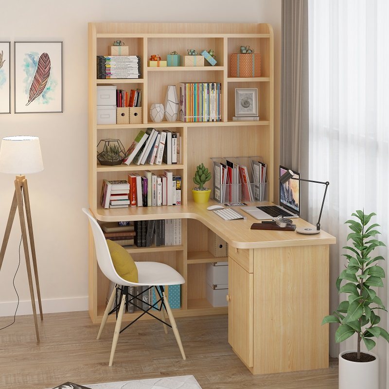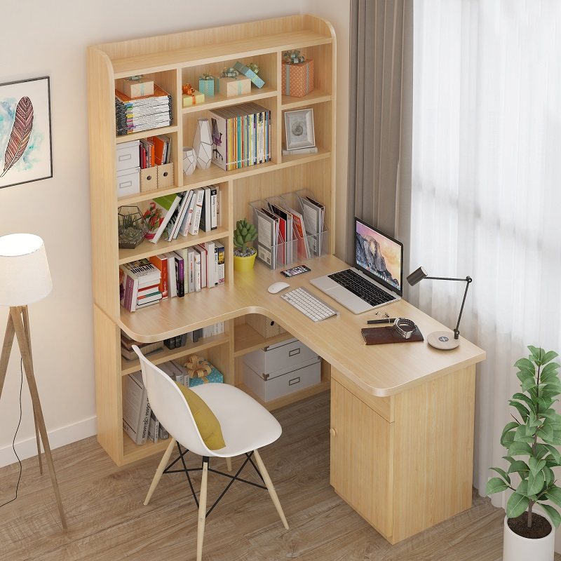Solid wood desk bookshelf combination small apartment student corner desktop computer desk home children's study desk writing desk