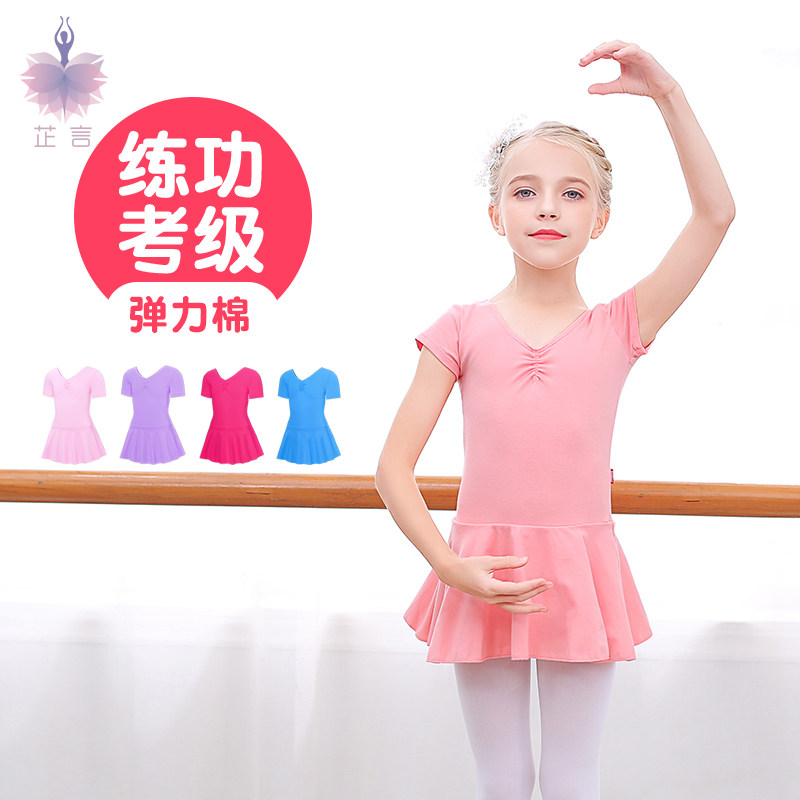 Children's dance clothing spring and autumn ballet skirt girls short-sleeved cotton exercise clothing examination grade dance skirt Chinese dance clothing