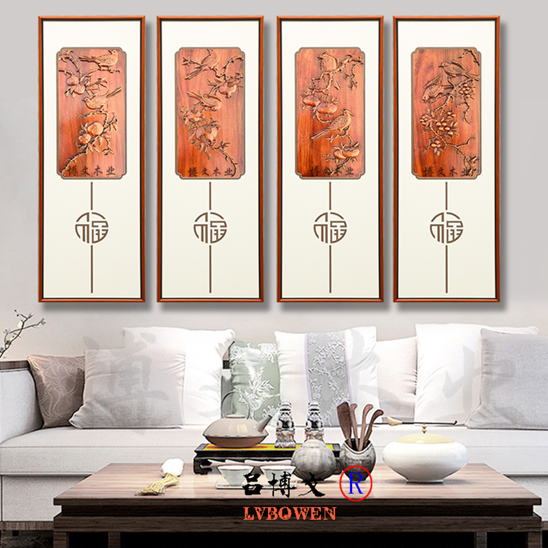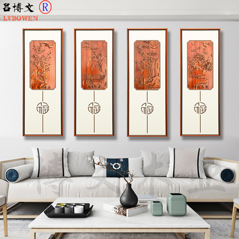 Dongyang Wood Carving Plum, Orchid, Bamboo and Chrysanthemum Quadruple New Chinese Living Room Tea Room Aisle Happy Events Four Screen Decorative Paintings