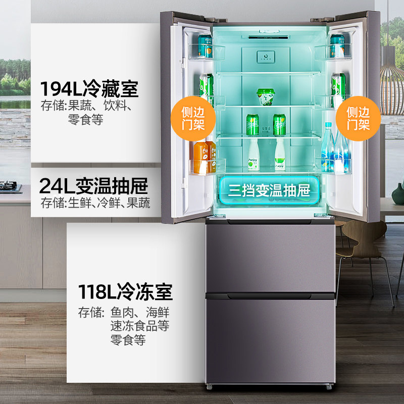 New Fly BCD-336 Liters Style Four Doors Fridge Home Air-cooled Frost-free First Level Frequency Conversion Open Multi Door Refrigerator