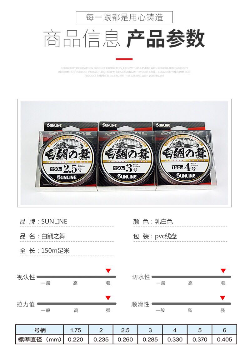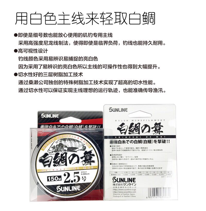SUNLINE Sangse's new dance of white sea bream 150 meters semi-floating white rocky fishing line sea fishing line fishing line fishing line
