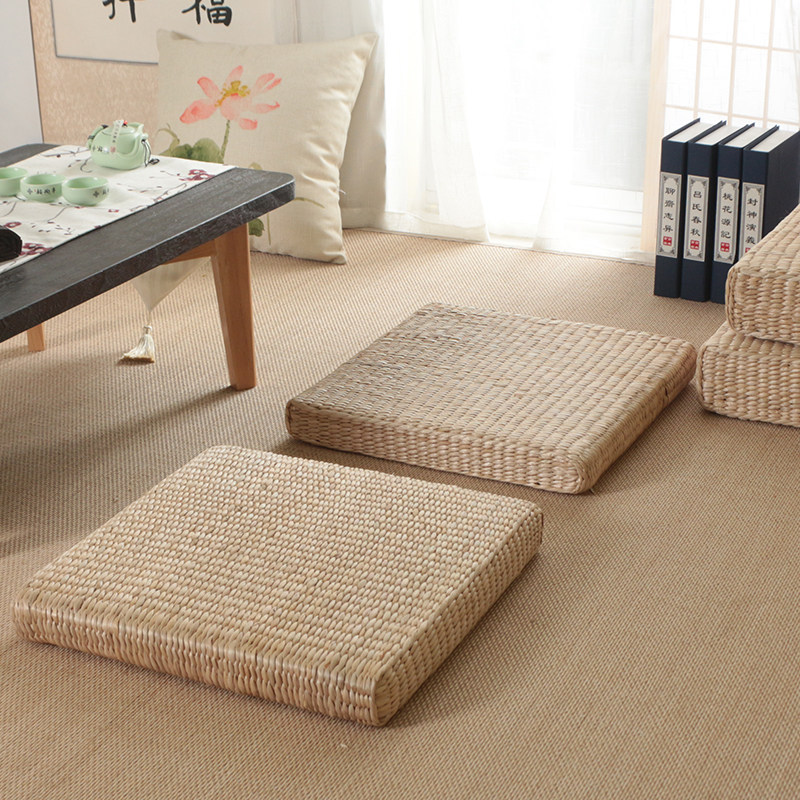 Pu Le cushion tatami sits on the ground of Baver thick meditation pad for vine choreography with square fur