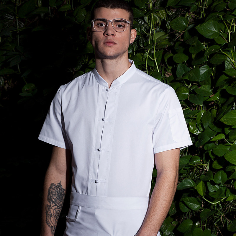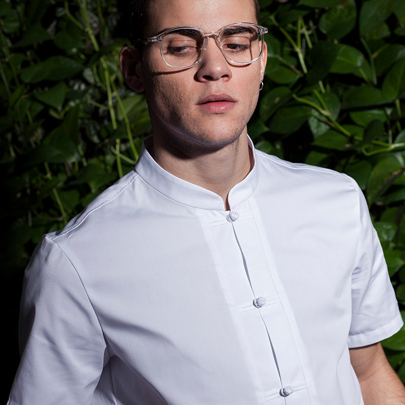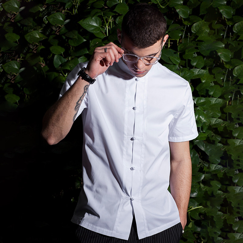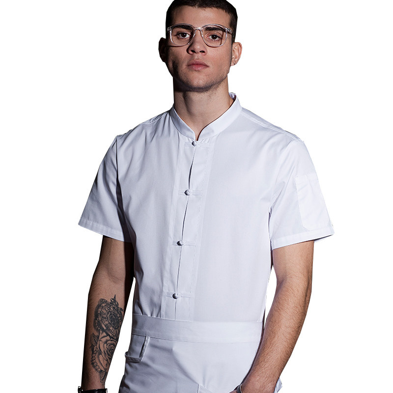 Domilai summer chef suit men's short-sleeved breathable plate buckle Chinese Xinjiang cotton kitchen clothes custom white