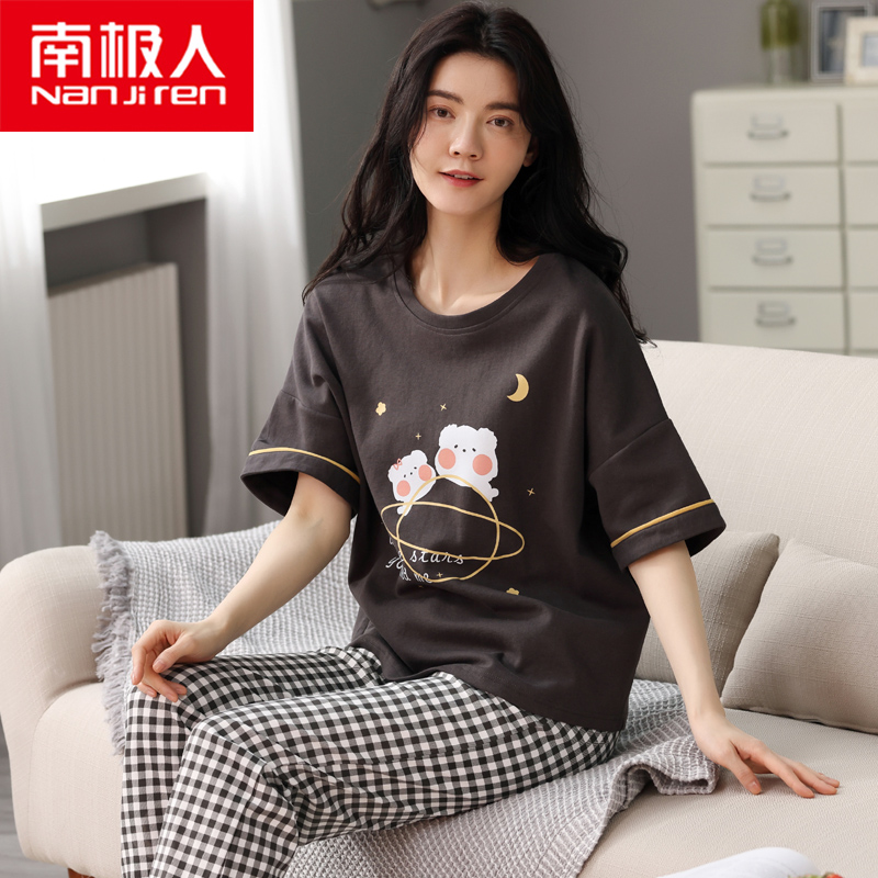 Antarctic pajamas women's summer pure cotton short-sleeved trousers two-piece suit thin cotton home wear 2021 new