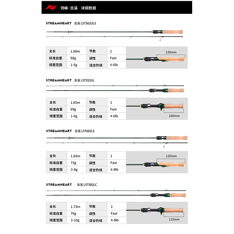 Straight shank 562ULS 1 68 m straight shank 602LS 1 83 m gun handle 552UL 1 65 m gun handle 582LC 1 73 m